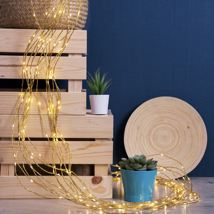 Повесьте изделие под потолком или украсьте ёлку. Гирлянду можно сочетать с красивой драпировкой тканей (например, со шторами или тюлем) — такой приём выгодно преобразит интерьер.