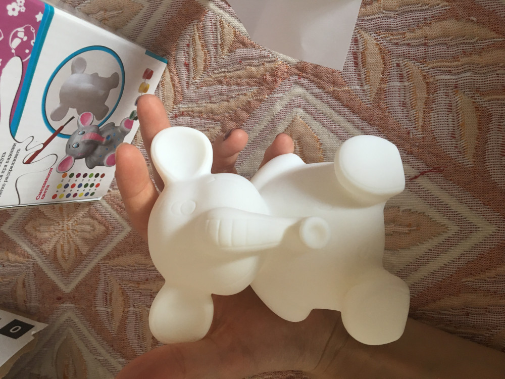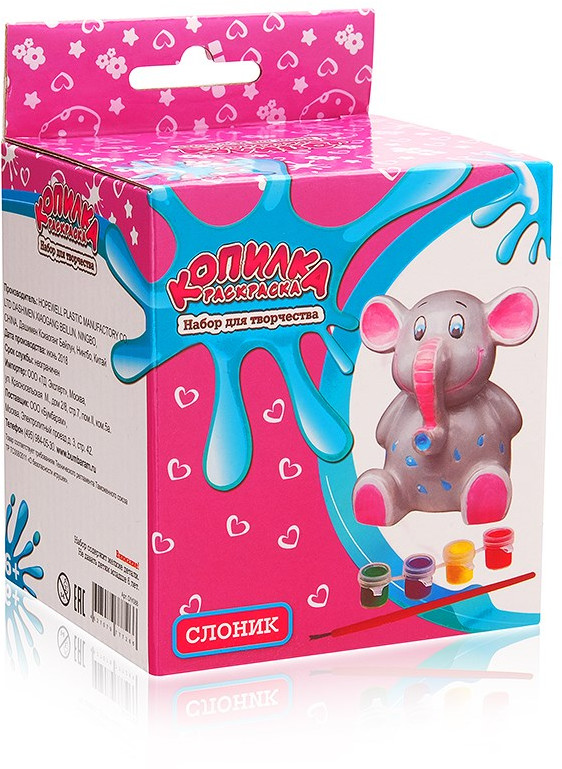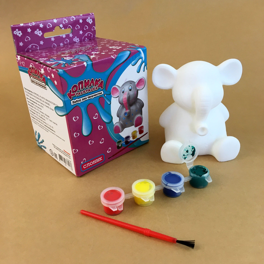 Копилка продается в некрашеном виде, в комплекте с красками и кисточкой. Ребенок самостоятельно распишет ее так, как ему захочется. Фигурка сделана из пластика с гладкой поверхностью. Краски высыхают быстро, не текут и не смазываются. Вы можете покрыть копилку красками в один или несколько слоев, дать ей полностью высохнуть, а потом использовать для хранения монет.