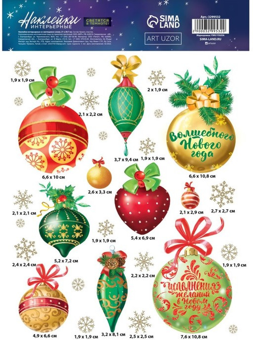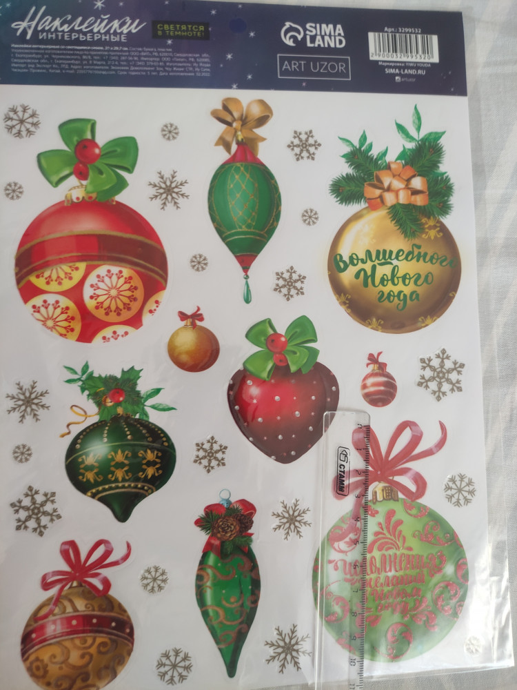 К качеству и внешнему виду наклеек никаких претензий нет. Единственный минус в том, что на сайте указано, что они многоразовые. На самом деле они предназначены для разового использования. Самая большая наклейка 10,5 см. В темноте светятся