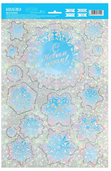 Арт Узор Наклейка-голография интерьерная «Сверкающие снежинки»-25% +4
