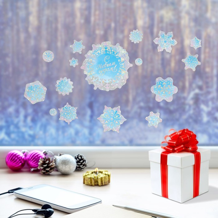 Наклейки снежинки симпатичные, но на стекле смотрятся не очень - лучше на стене или двери.