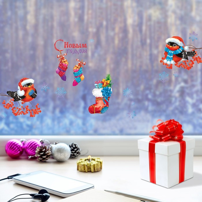 Арт Узор Наклейка-голография интерьерная «Снегири»-40% +7