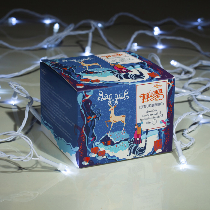 цвет красивый. коробочка новогодняя. сама гирлянда очень красивая качественная.