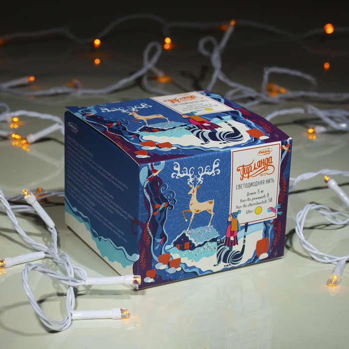 цвет красивый. коробочка новогодняя. сама гирлянда очень красивая качественная.