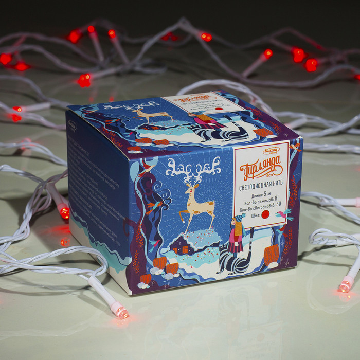 цвет красивый. коробочка новогодняя. сама гирлянда очень красивая качественная.