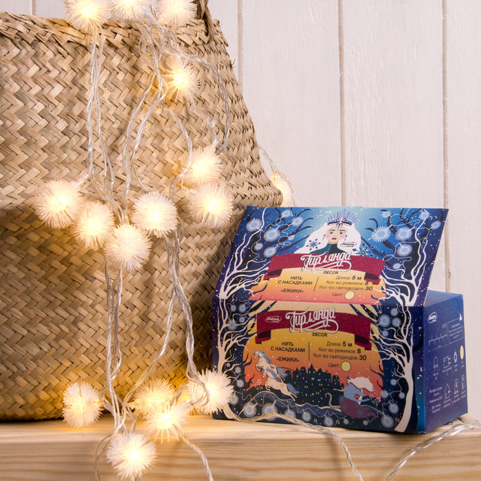 Luazon Гирлянда с насадками «Ежики белые»