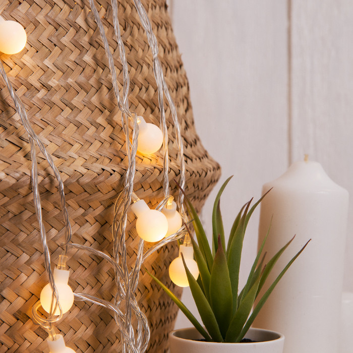 Веселая гирлянда, шарики и вправду не большие(d~1 см) Тем не менее, в теплом цвете, добавляет уют.