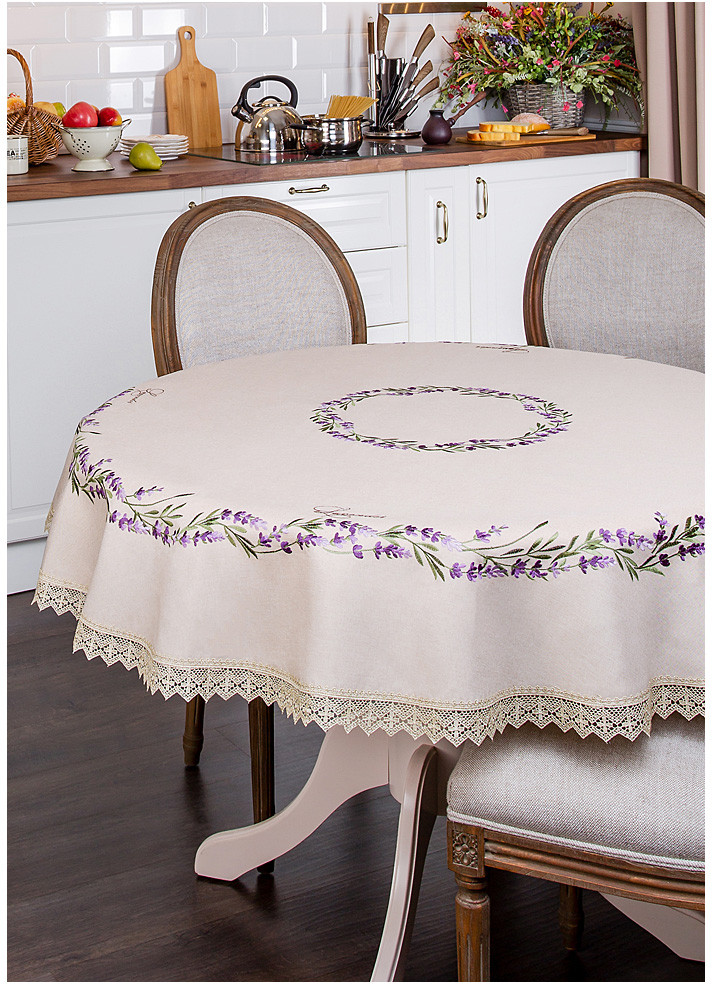Красивая скатерть, однако на стол диаметром 115 см оказался маловат.