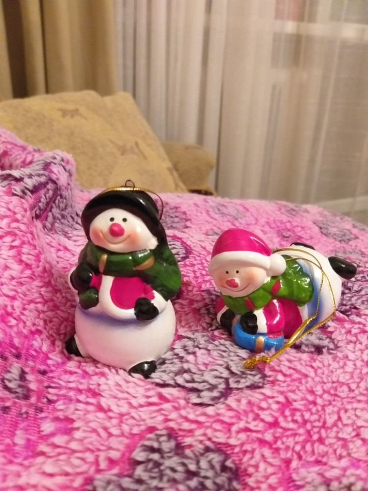 Чудесные снеговички! Заказывала 5 шт, все хорошего качества, яркие. И они разные)есть горизонтальные, как на картинке на сайте, а есть вертикальные . С разным цветом шарфиков. Я хочу ещё!