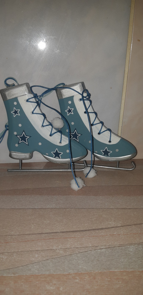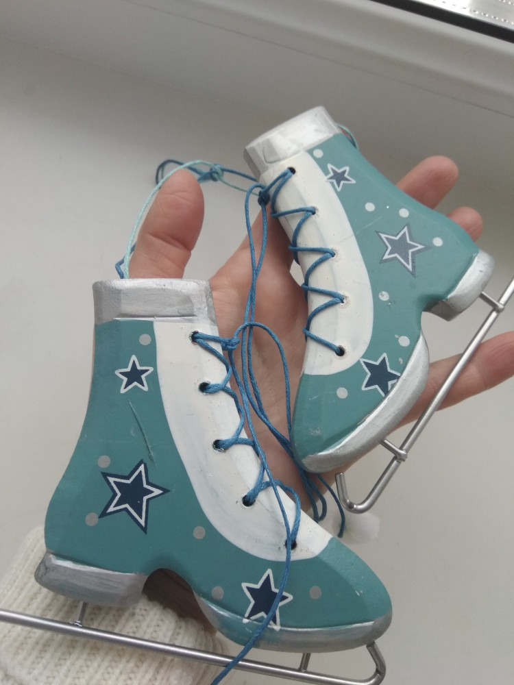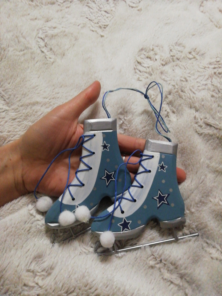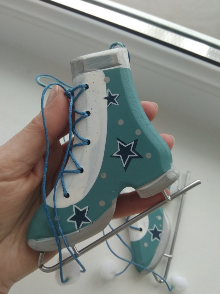 Интересное ёлочное украшение. Очень большие коньки. Качество хорошее. За такую цену отличное приобретение. Фото прилагаю