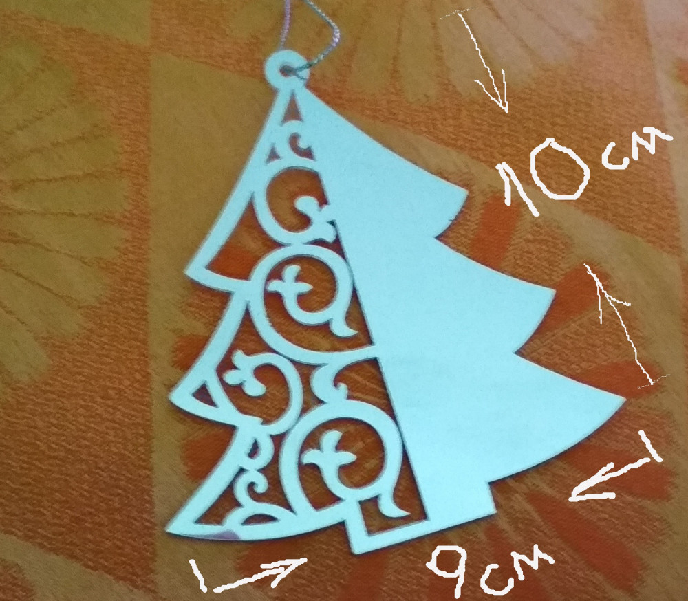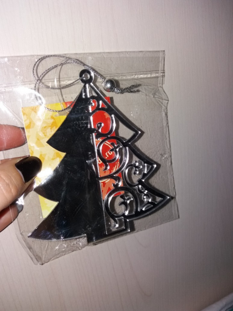 Ёлочка дивная, несмотря на то, что пластмасса, смотрится очень презентабельно и серебристо-зеркальная поверхность, похожа на металл. Размеры - 10 см в высоту, 9 см - в ширину.