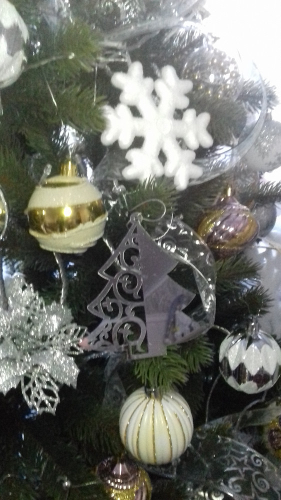Очень нежная ёлочка. В реальности она еще лучше. На фото она серебристого цвета, а на самом деле она зеркальная! Рекомендую!