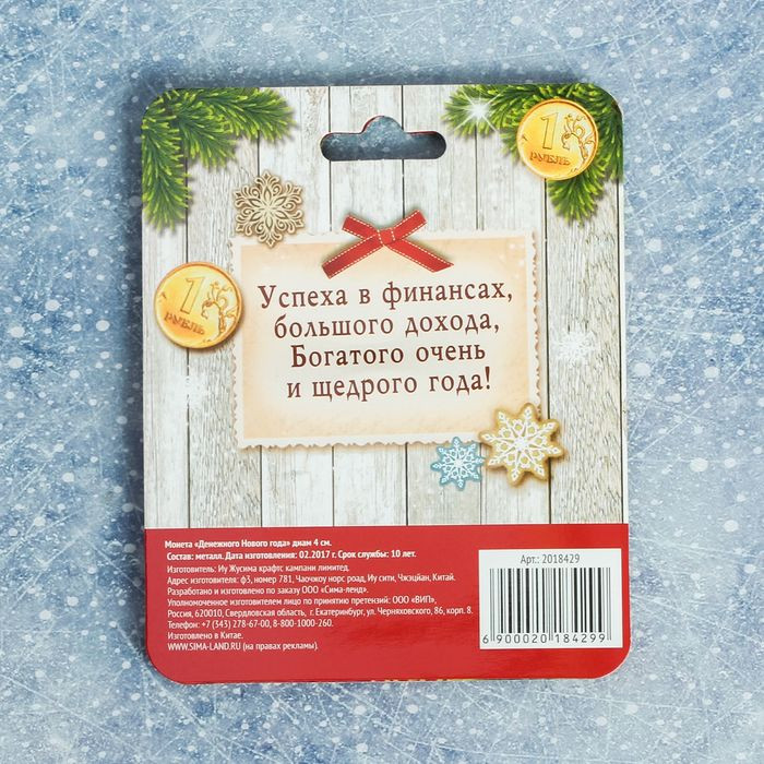 Монета новогодняя «Денежного нового года»В данный момент этот товар отсутствует в продаже. Возможно, у нас найдется аналогичный или похожий товар здесь. Серия: Новый год Новый год — праздник, который с нетерпением ждут и взрослые, и дети. Это день, когда все мы не просто хотим получить подарок, а попасть на мгновение в сказку, наполненную чудесами и волшебством. |
