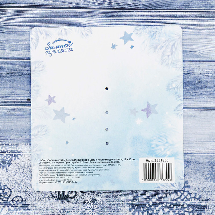 Зимнее волшебство Набор: карандаш, листочки для записи «Запиши, чтобы всё сбылось!»В данный момент этот товар отсутствует в продаже. Возможно, у нас найдется аналогичный или похожий товар здесь. Серия: Снежная зима Оригинальный набор с листочками для записей новогодних желаний и карандашом станет веселым и необычным сувениром. А дизайнерская упаковка придаст торжественную нотку вашему подарку. |