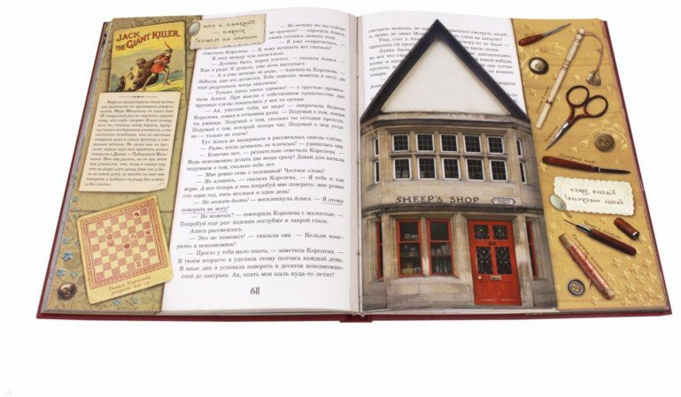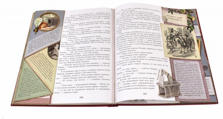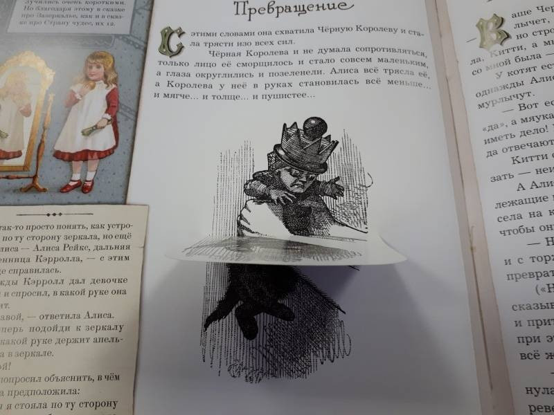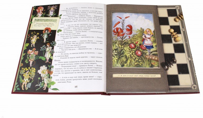 Эта книга - настоящее сокровище! Фантастически красивые иллюстрации, интерактивные вставки: зонтик, цветочный сад, шахматы в которые можно играть, рецепт пудинга, вставки, написанные зеркальным почерком, которые можно читать с помощью зеркальца-закладки. На мой взгляд, это издание "Алисы в Зазеркалье" ничем не уступает, а в чем то даже превосходит книгу "Алиса в стране чудес" издательства "Лабиринт". Благодарю наш Флип и его сотрудников за быструю доставку!