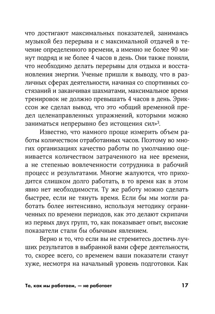 💳 Оплатить за товар можно при получении 🇰🇿 Есть бесплатная доставка по Казахстану от 1 дня 🎁 Копите бонусы с каждой покупки Серия: Саморазвитие «В организационной структуре и в нашей системе убеждений прочно укоренилось заблуждение, что человек, как и компьютер, работает наиболее эффективно в линейной среде: непрерывно, на высокой скорости, в течение длительного периода времени, запуская одновременно несколько программ. И очень многие из нас невольно купились на этот миф — некий стокгольмский синдром, покорно пытаясь скопировать действия управляемых нами машин, и в итоге машины стали управлять нами». |