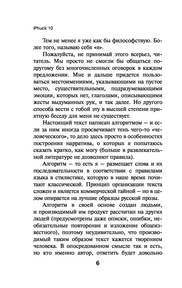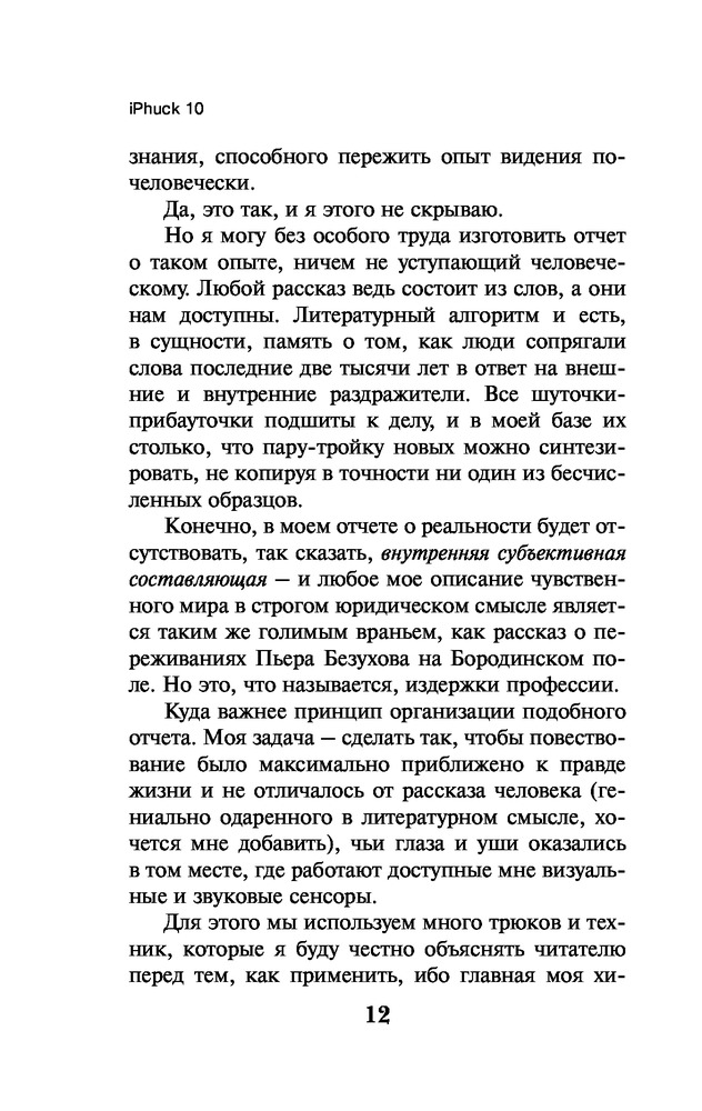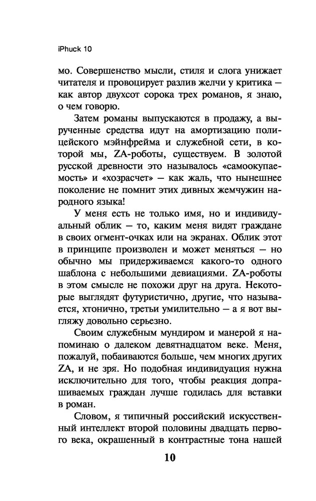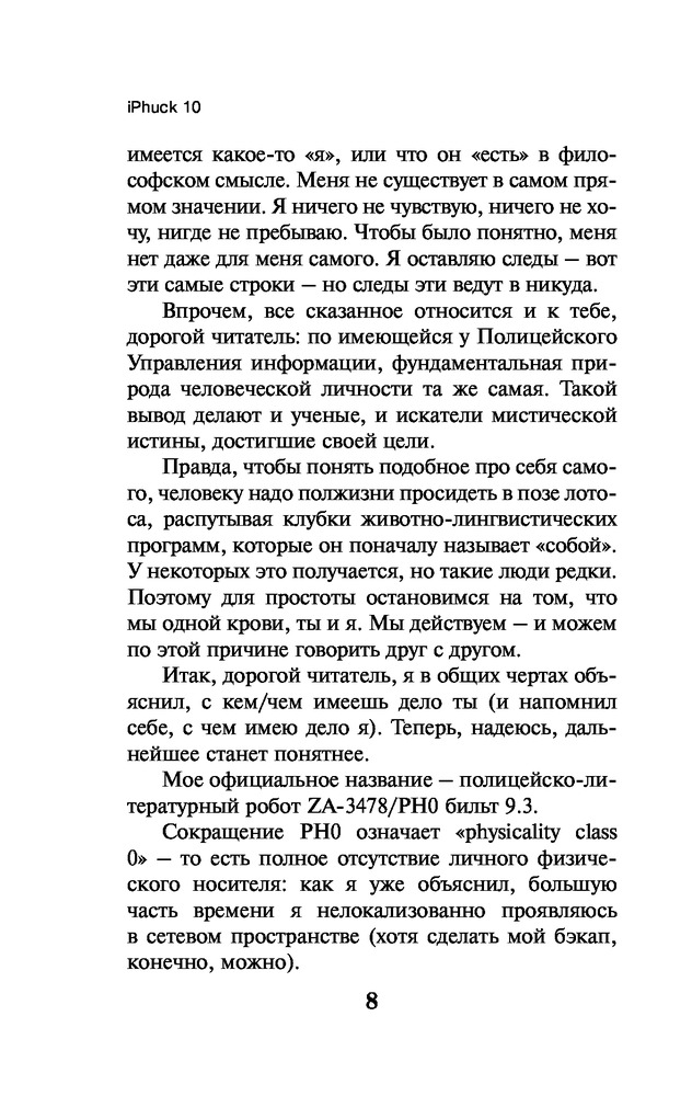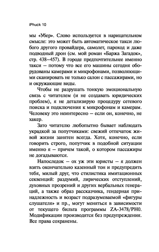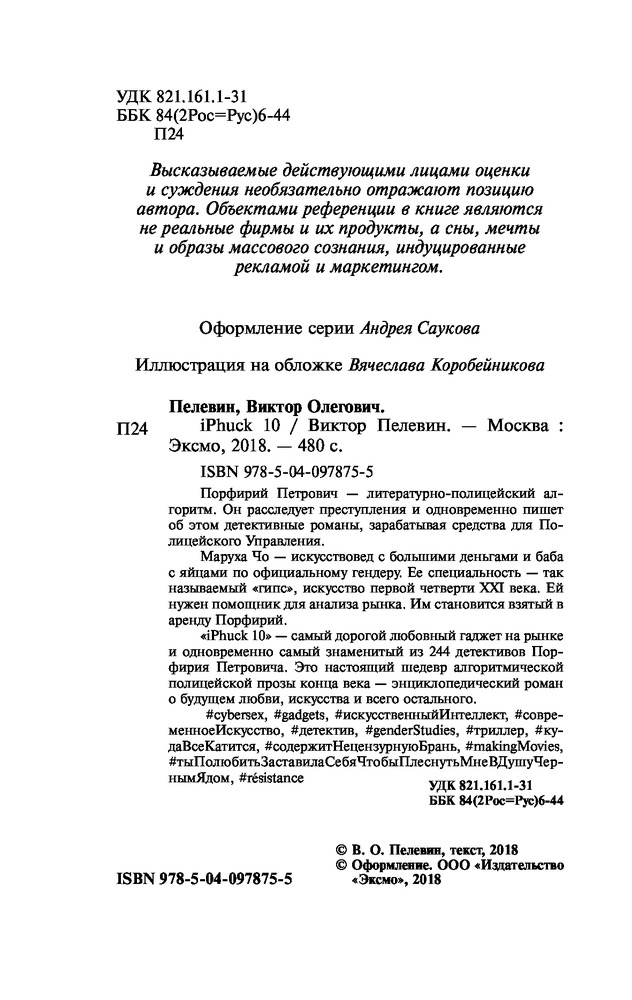 💳 Оплатить за товар можно при получении 🇰🇿 Есть бесплатная доставка по Казахстану от 1 дня 🎁 Копите бонусы с каждой покупки Серия: Pocket Book (обложка) Порфирий Петрович — литературно-полицейский алгоритм. Он расследует преступления и одновременно пишет об этом детективные романы, зарабатывая средства для Полицейского Управления. Маруха Чо — искусствовед с большими деньгами и баба с яйцами по официальному гендеру. Ее специальность — так называемый «гипс», искусство первой четверти XXI века. Ей нужен помощник для анализа рынка. Им становится взятый в аренду Порфирий. «iPhuck 10» — самый дорогой любовный гаджет на рынке и одновременно самый знаменитый из 244 детективов Порфирия Петровича. Это настоящий шедевр алгоритмической полицейской прозы конца века — энциклопедический роман о будущем любви, искусства и всего остального. |
