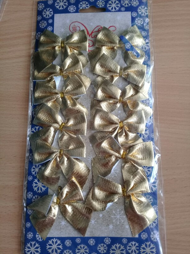 Отличные бантики! Размер - в самый раз! Брала три комплекта: красные, золотые и комбинированные. На ёлке смотрятся очень нарядно!