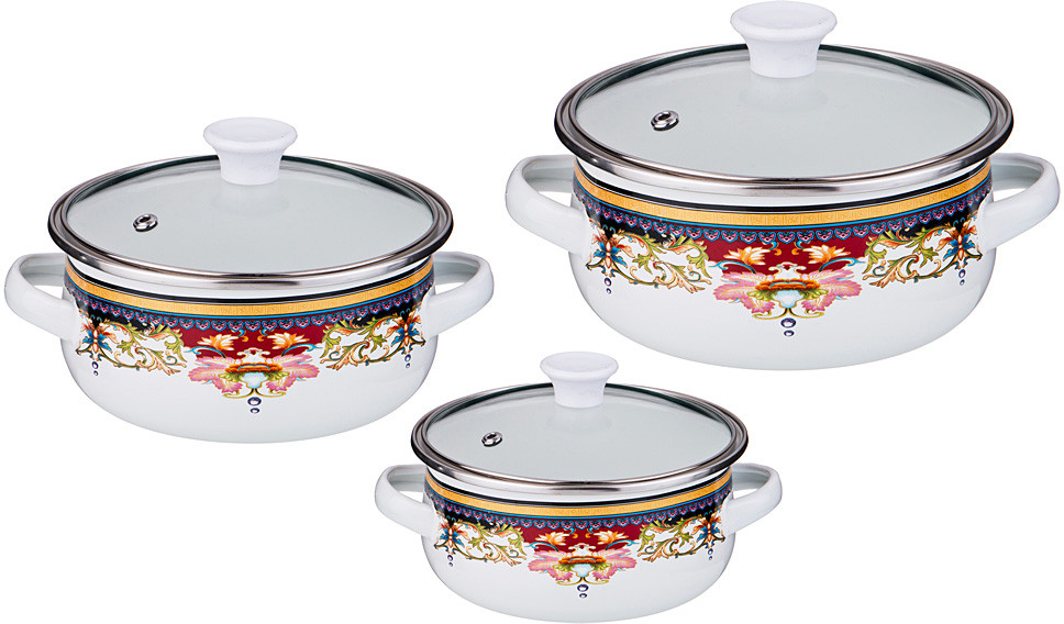 Кастрюли Agness — практичный набор для каждой хозяйки. Выполнены кастрюли из углеродистой стали с эмалевой поверхностью. В комплект входят 3 кастрюли с крышками, выполненными из стекла. Прозрачная основа крышек позволит проследить за процессом готовки. Многослойная сталь обеспечивает быстрый нагрев продуктов и сохраняет тепло длительное время. Оснащены кастрюли удобными ручками. Такой набор станет прекрасным дополнением к кухонной посуде.