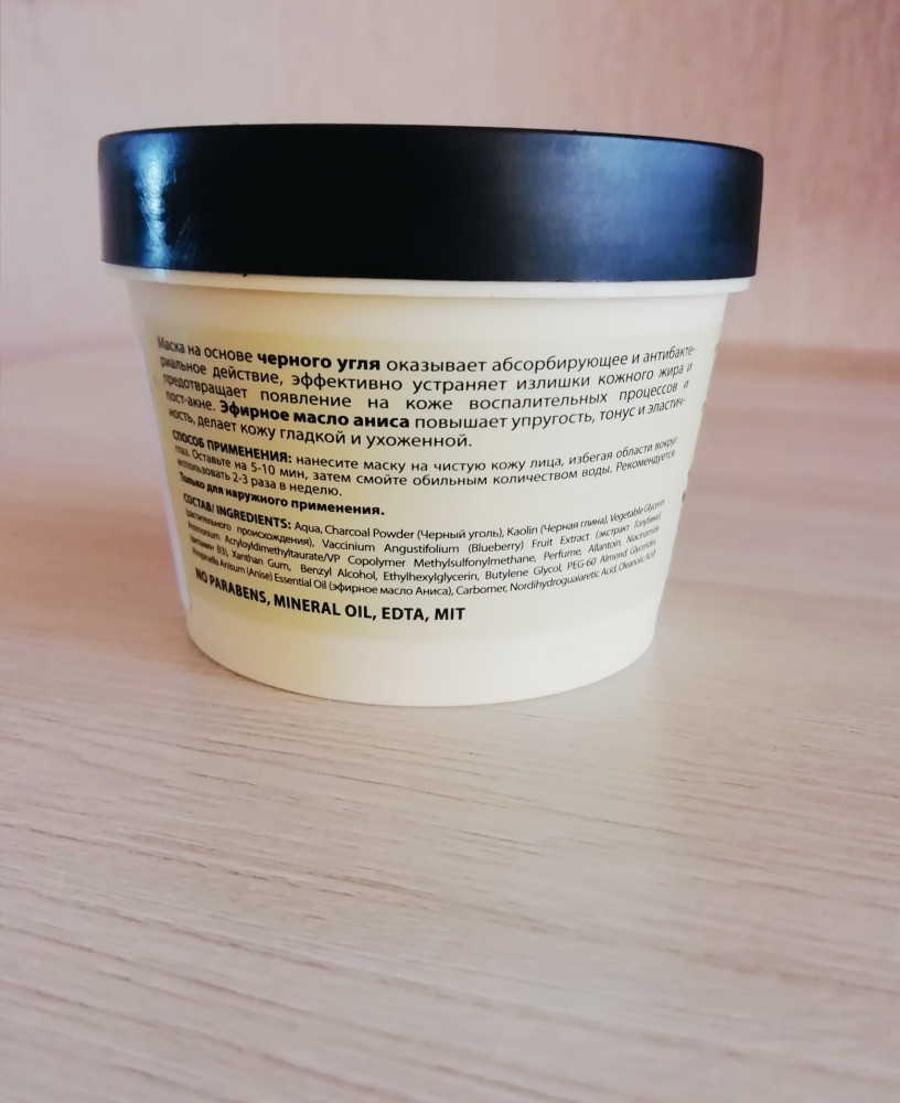 Заказала чёрный уголь и анис. Довольна покупкой. Упаковка на высшем уровне. Имеет специфический запах угля, мажется легко, очень влажная консистенция, питает и увлажняет отлично. На весну и лето самое то.