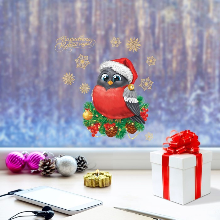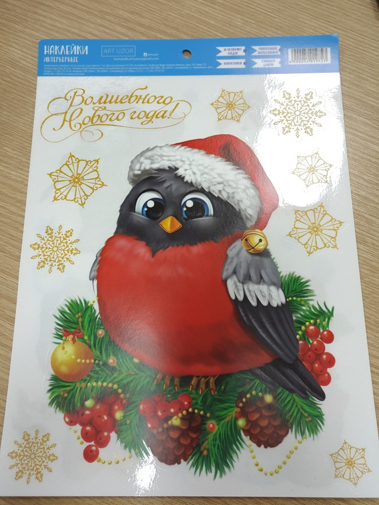 Очень красивая наклейка, такой красивый снегирь и очень здорово на стекле окна смотрится.