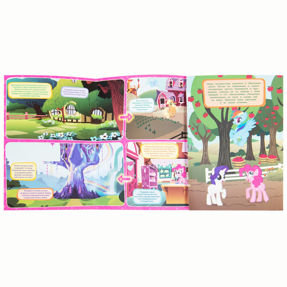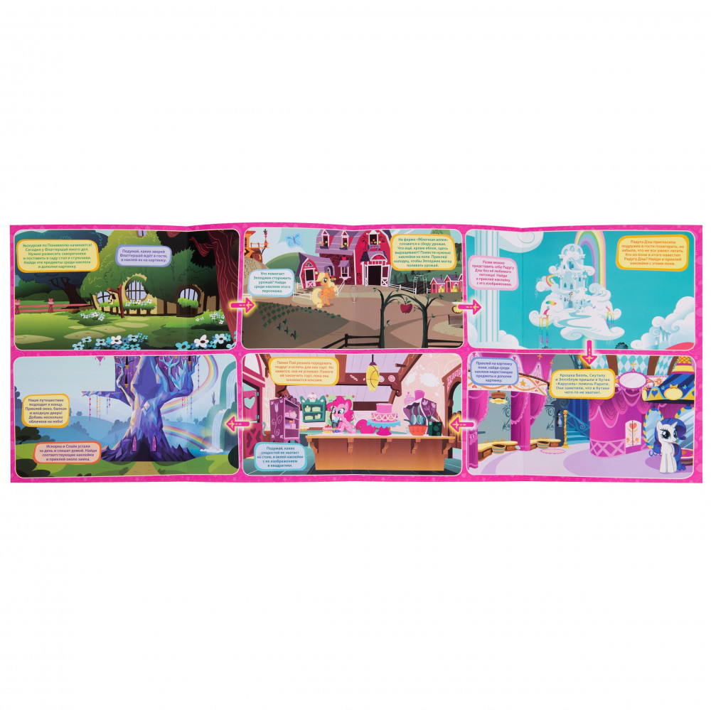 Мой маленький пони. Прогулка по Понивиллю. Панорамка — играВ данный момент этот товар отсутствует в продаже. Возможно, у нас найдется аналогичный или похожий товар здесь. Серия: Панорамка - игра Хочешь совершить увлекательную экскурсию по Понивиллю вместе с милыми подружками — пони из мультфильма «Мой маленький пони»? Скорее открывай эту панорамку! А во время прогулки ты сможешь помочь Пинки Пай, Эпплджек и Флаттершай, найдя нужные наклейки и разместив их на игровом поле! |