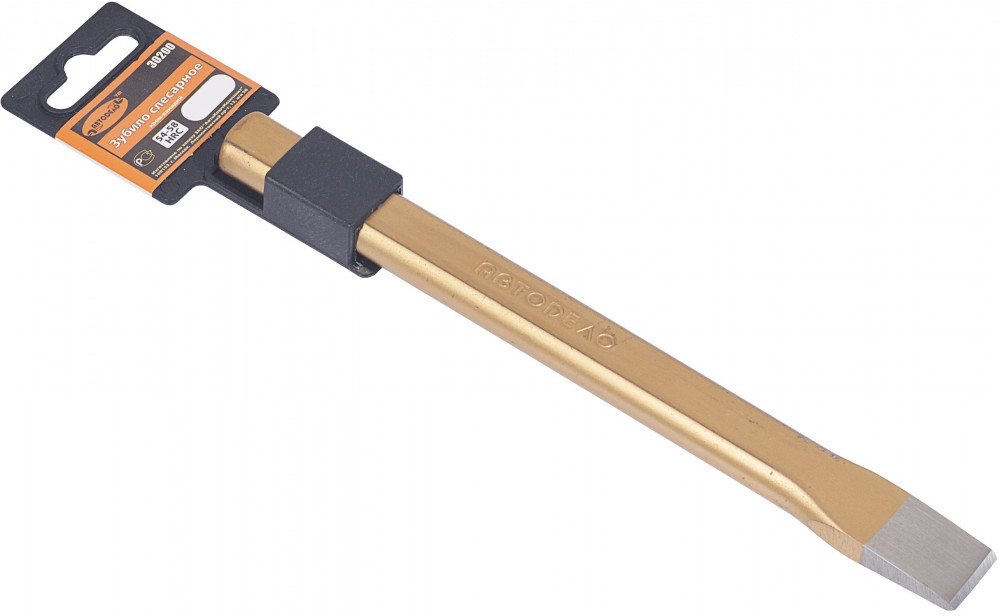 Изготовлено из инструментальной стали 60CRV методом горячей штамповки (ковки на молотах), закалён до твёрдости 54-58 HRC. Стержень зубила выполнен в виде шестигранника.