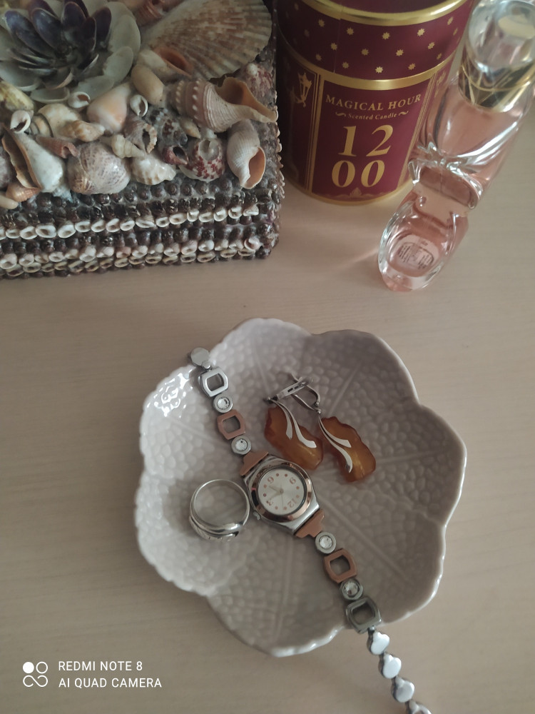Очень милая фарфоровая тарелочка - мелочница, хотя кажется керамической.Удивительно,что изготовлена ещё в 2018 г. Отлично вписалась в интерьер моего туалетного столика.