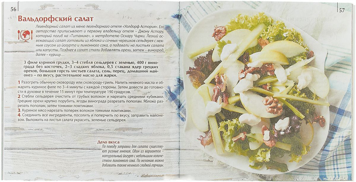 Знаменитые салаты и закускиВ данный момент этот товар отсутствует в продаже. Возможно, у нас найдется аналогичный или похожий товар здесь. Серия: Мировая кухня Этот сборник знаменитых салатов и закусок станет настоящей находкой для истинного гурмана. В нем собраны лучшие рецепты со всего света. |