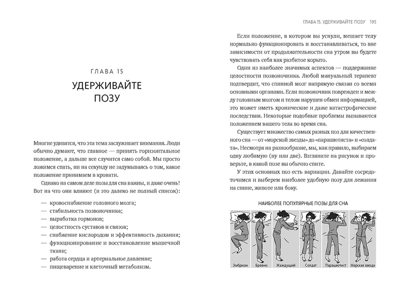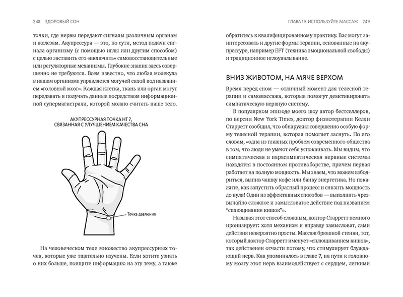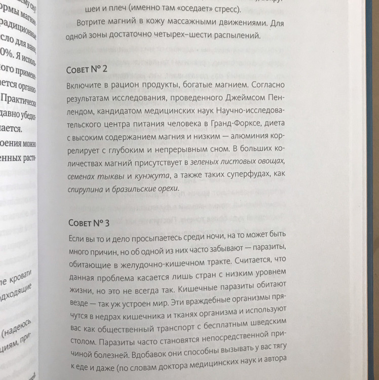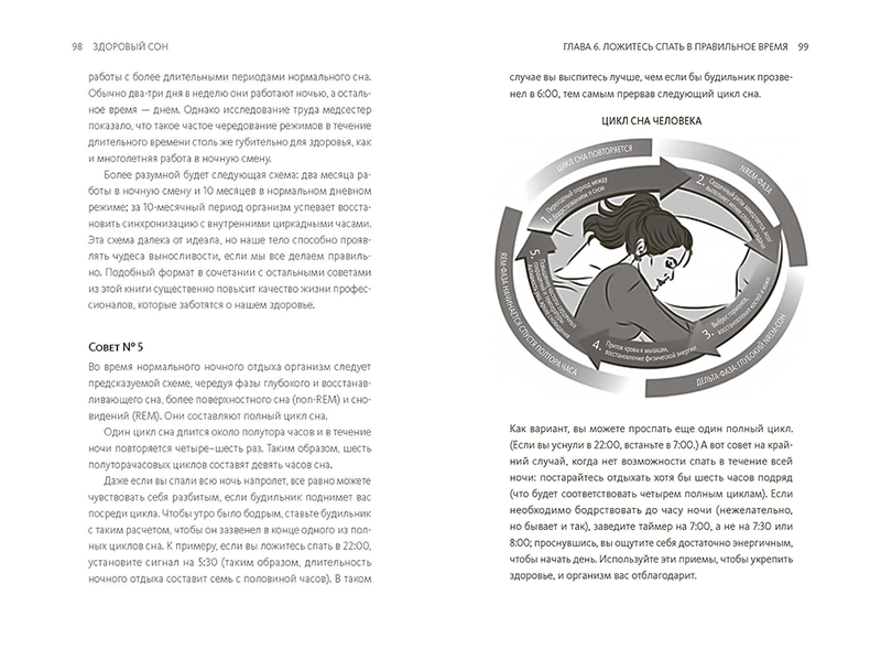 Отличная книга для тех, кто хочет качественно улучшить свой сон. Я всегда засыпал где-то в 2-3 ночи и чтобы уснуть у меня уходило около часа времени. Выполняя советы в этой книге я нормализовал свой сон. Все очень хорошо объяснено и отлично подано. Советую для покупки!