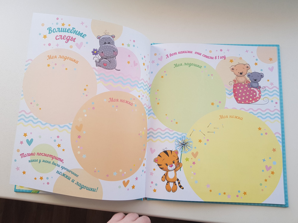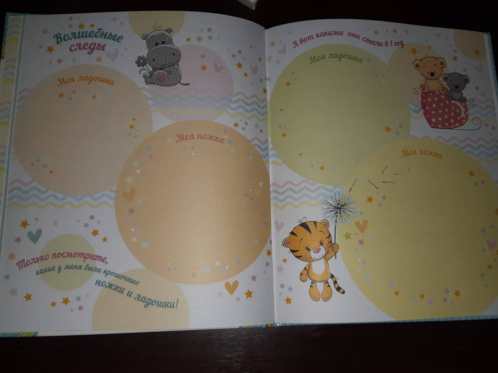 Мы в восторге от альбома. Не ожидала, что будет такой большой (не смотрела размер). Плотные страницы, красочный, много фотографий. Даже есть страница с отпечатками ручек и ножек. Доставили быстрее чем обещали. Сказали на складе будет 9 января + доставка 4-5 дней. По факту привезли 4 января. Стоит своих денег