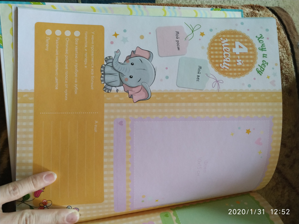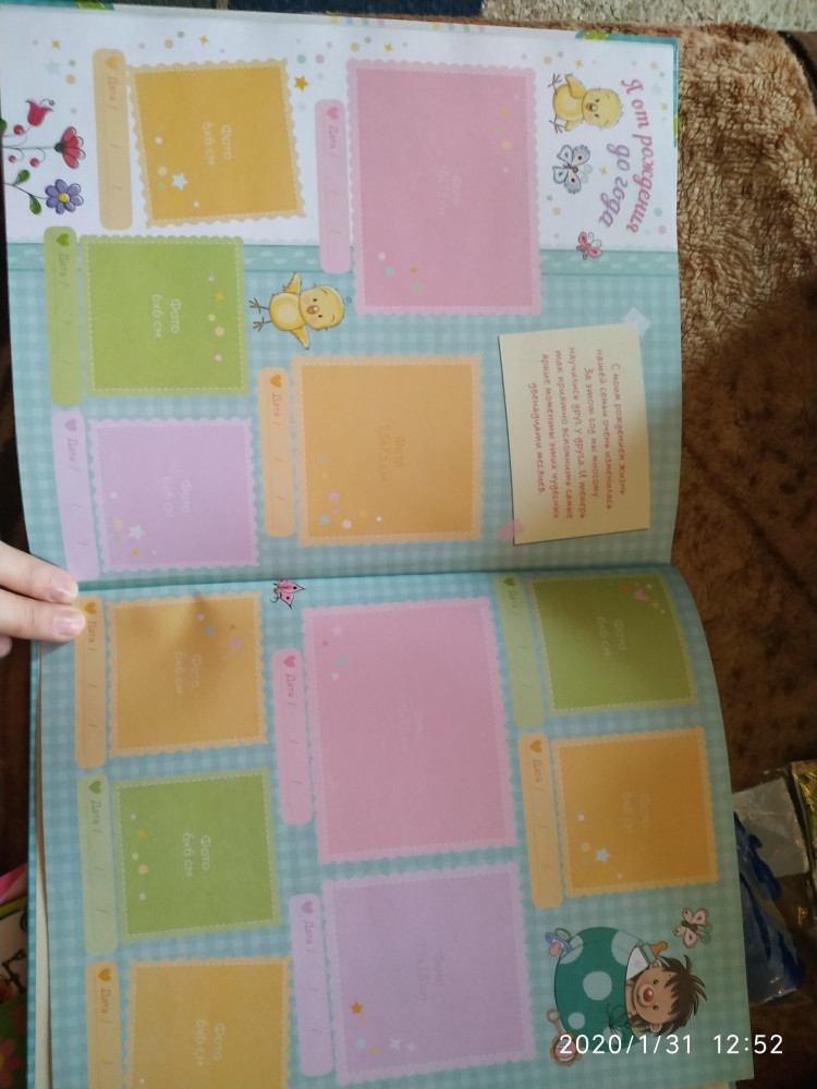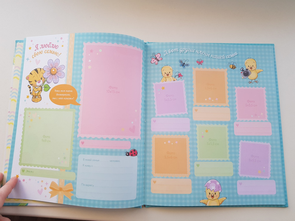 Покупкой довольная, книжка хорошая, рамки под фото разных размеров, вся информация внутри полезная, все что надо. Советую.