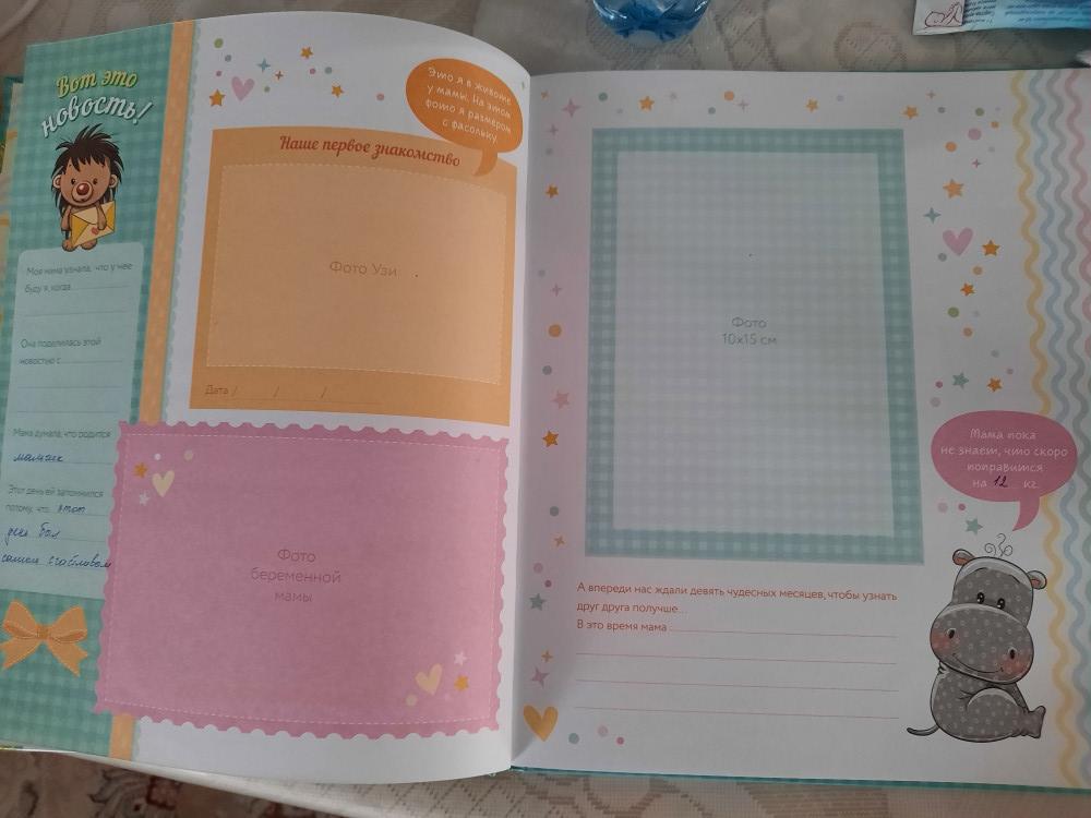 Спасибо большое, альбомчик супер! Можно и фотографии вклеить и записать важные события, интересные иллюстрации, переплет (обложка) довольно плотный картон глянцевый, размер большой, подарила детям на рождение сыночка, им понравилось!