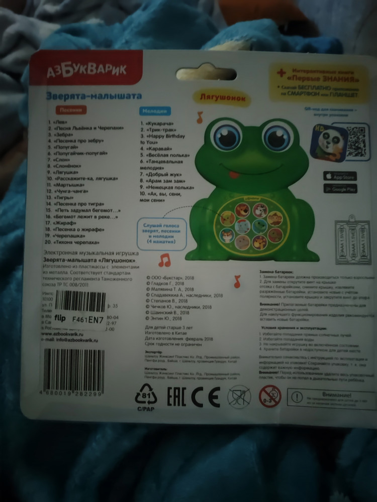 замечательная лягушка, ребенок очень доволен, не выпускает из рук. мальчик 2,5 года. читала много негативных отзывов, что тихий звук у азбукварика, но в данной игрушке звук нормальный, вполне слышно всё, ничего не заедает. мы довольны, буду брать другие.