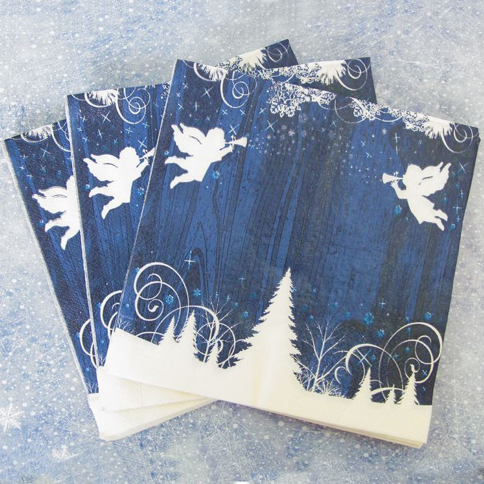 Салфетки бумажные «Ангелочки»В данный момент этот товар отсутствует в продаже. Возможно, у нас найдется аналогичный или похожий товар здесь. Праздничный стол, или обычный скромный ужин — это не только вкусные и хорошо приготовленные блюда. Красивая и завершенная сервировка стола не обойдется без такого элемента, как салфетки, которые выполняют не только декоративную, но и практическую функцию. |