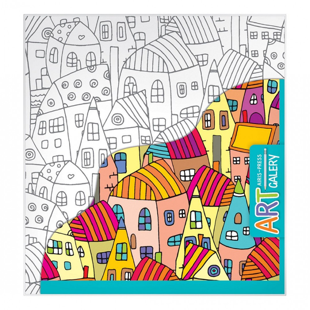 Раскраска «Домики» поможет раскрыть творческие способности. Картинка с множеством мелких деталей надолго займёт ребёнка.