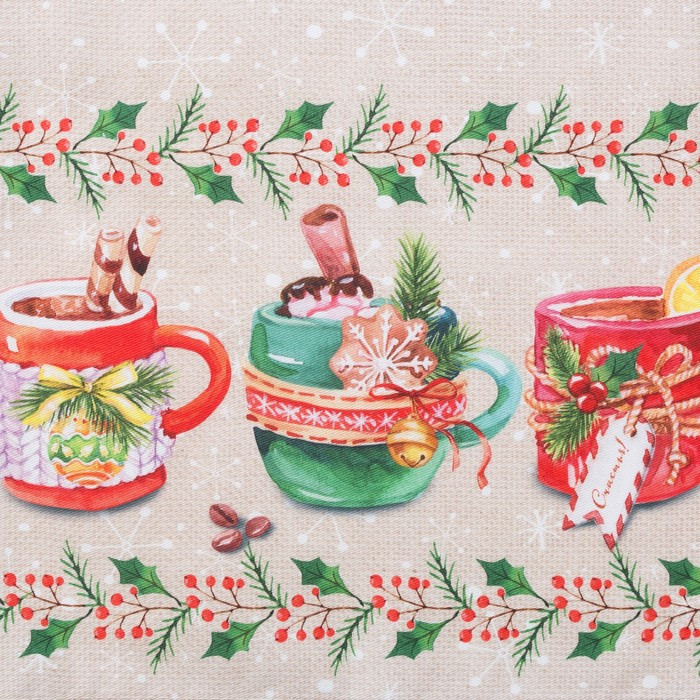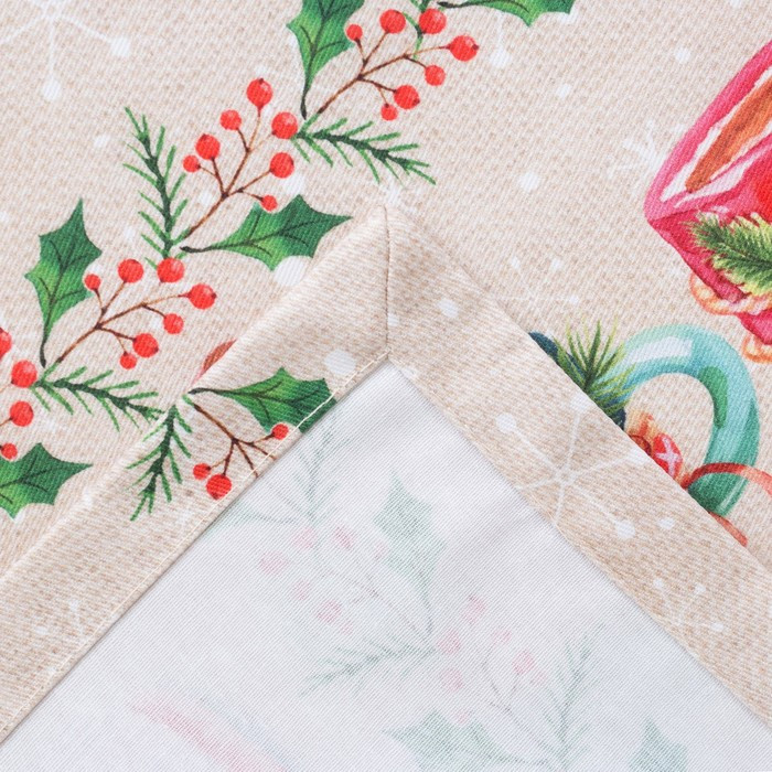 • край дорожки украшен вышивкой в новогодней тематике;