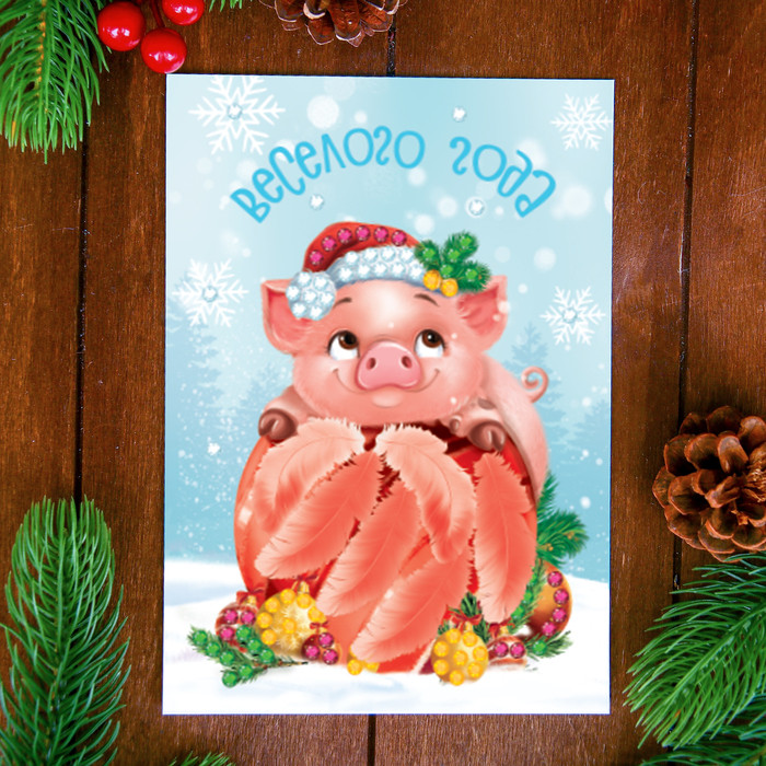 Школа талантов Аппликация перьями и стразами «Свинка и шар»