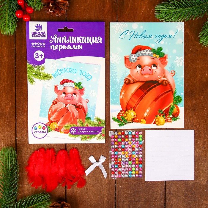 Аппликация перьями и стразами «Свинка и шар» - Фото 1Аппликация перьями и стразами «Свинка и шар» - Фото 2Аппликация перьями и стразами «Свинка и шар» - Фото 3