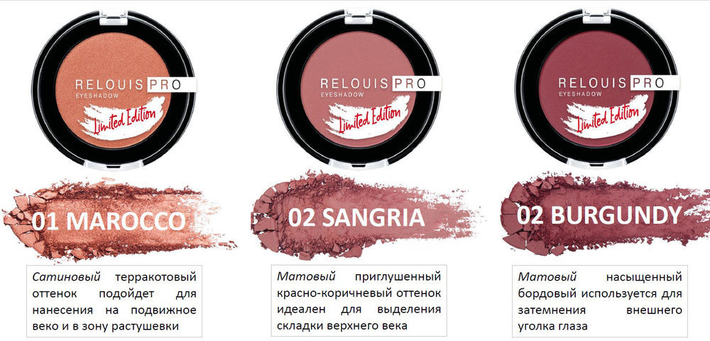 Брала оттенки 06 и 03. Пигмент отдают отлично, не пылят. Очень нравятся. Спасибо Flip.kz за постоянное пополнение ассортимента!
