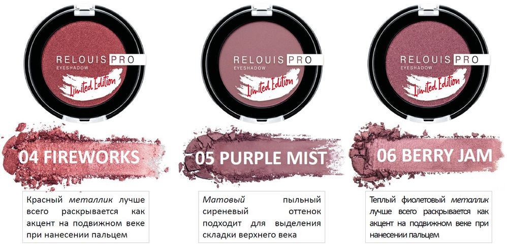 RELOUIS Тени для век компактные, оттенок 06 Berry jam