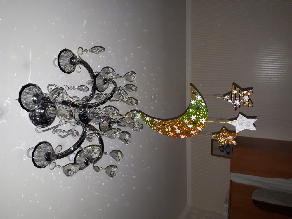 Милая луна с звёздами заняла место на люстре.... при небольшом ветре она поворачивается и блестит. Мне понравилось и деткам тоже. Спасибо любимый Flip.kz Спасибо нашему уважаемому Курьеру Азамату за коммуникабельность, быструю доставку. Вы лучшие!
