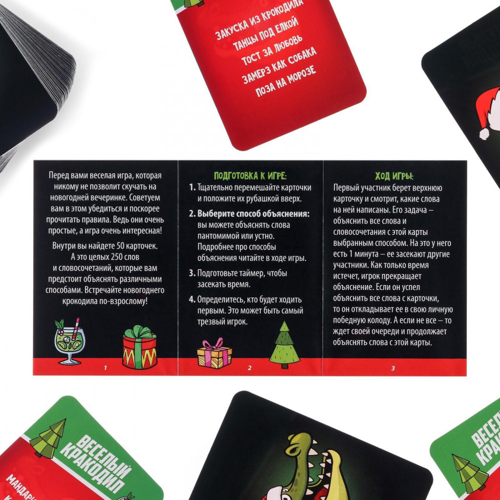 Собрались большой компанией? Хотите как следует повеселиться? Возьмите на вечеринку «Новогоднего крокодила» — с ним не соскучиться! Вам предстоит объяснять слова разными способами, выпивать и развлекаться. На старт, внимание, начали!