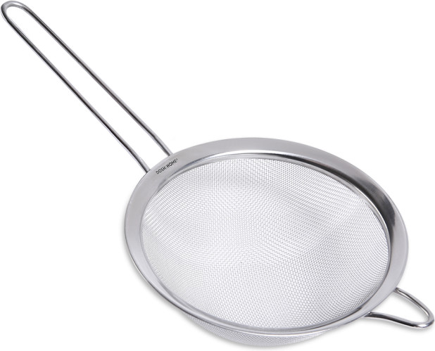 Отличное сито. Крепкое. Сама сетка до этого у меня была помельче, в этом она крупнее, но не критично. Брала для процеживания бульонов.