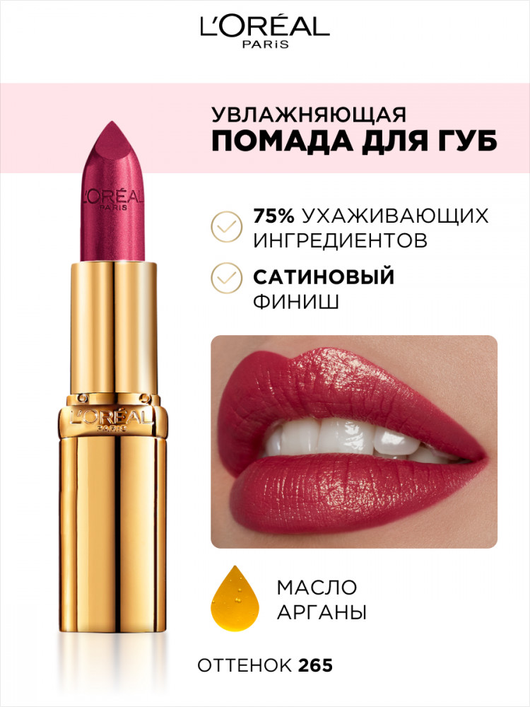 L'Oreal Paris Помада для губ «Color Riche» увлажняющая, оттенок 265 Розовый жемчуг