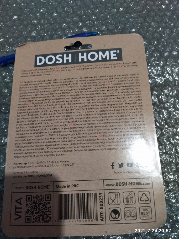 Dosh | Home Набор форм для печенья «Ёлочки»В данный момент этот товар отсутствует в продаже. Возможно, у нас найдется аналогичный или похожий товар здесь. Серия: Vita Прекрасно подходит для приготовления печёной и непечёной выпечки, десертов для детей, специальная форма формочки позволяет приготовить и двухцветные лакомства. Продукты питания не пригорают и не прилипают к формочке, готовые блюда легко вынимаются. Изготовлено из высококачественного силикона ( + 230 ºС ), подходит для всех типов духовок, включая микроволновую печь, подходит для холодильника, морозильника и посудомоечной машины. |