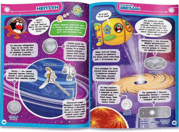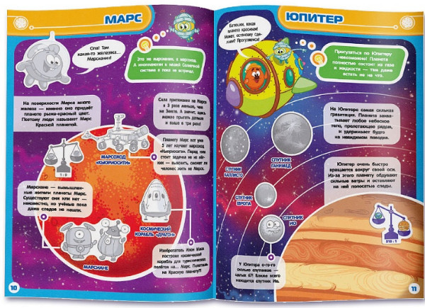 Мой космический атлас с наклейками. Космические каникулы Смешариков (45 наклеек)В данный момент этот товар отсутствует в продаже. Возможно, у нас найдется аналогичный или похожий товар здесь. Этот яркий космический атлас «Смешарики» знакомит Вашего малыша с солнечной системой. Открыв его, малыш отправится в большое путешествие с любимыми героями, где его ждут открытия и приключения! В пути узнает, можно ли полежать на Солнышке, как устроить рок-концерт на Меркурии и на какой планете «живет» Баба-Яга. И еще много-много всего интересного. |
