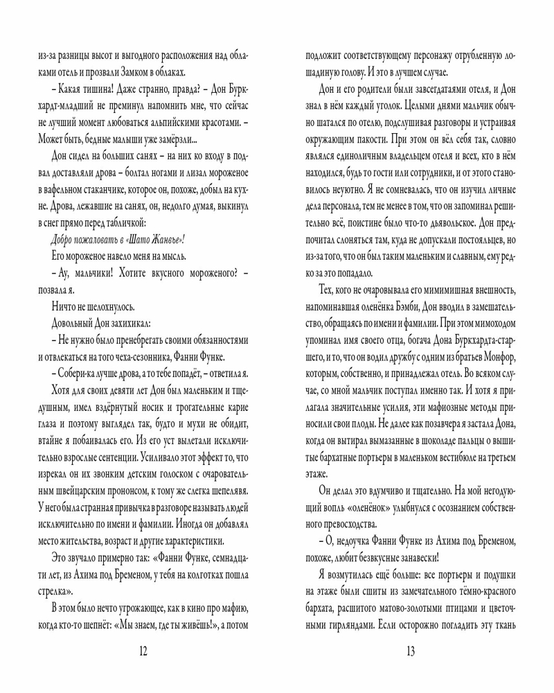 💳 Оплатить за товар можно при получении 🇰🇿 Есть бесплатная доставка по Казахстану от 1 дня 🎁 Копите бонусы с каждой покупки Фанни Функе считает себя неудачницей: школу не окончила, с родителями поссорилась и фактически сбежала из дома, поступив на годовую практику в старинный швейцарский отель «Шато Жанвье», который все называют Замком в облаках. Под Новый год в отеле яблоку негде упасть: сюда съехались сливки общества, в том числе семья загадочного русского олигарха, американский денежный мешок с многочисленными родственниками и специалист по драгоценным камням из Лондона, которого сопровождает обаятельный внук с замашками грабителя. Что привело их сюда? Действительно ли они те, за кого себя выдают? И главное — кому из них можно доверять? Пытаясь выяснить это, Фанни оказывается в эпицентре невероятных событий... |