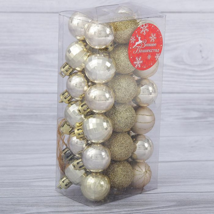 Набор подвесных украшений прекрасно подойдет для праздничного декора новогодней ели. Набор состоит из 36 пластиковых шаров. Для удобного размещения на елке для каждого украшения предусмотрено петелька.