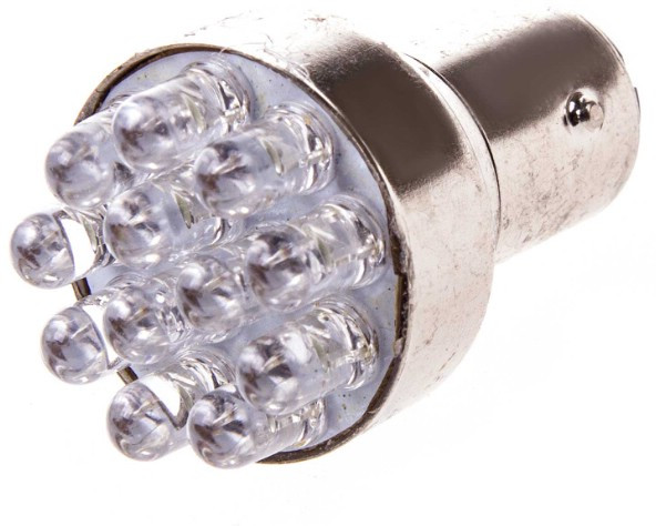 Автолампа состоит из 12 диодов и одного контакта для подключения. Чаще всего используются в габаритных огнях, стоп-сигналах, поворотах.